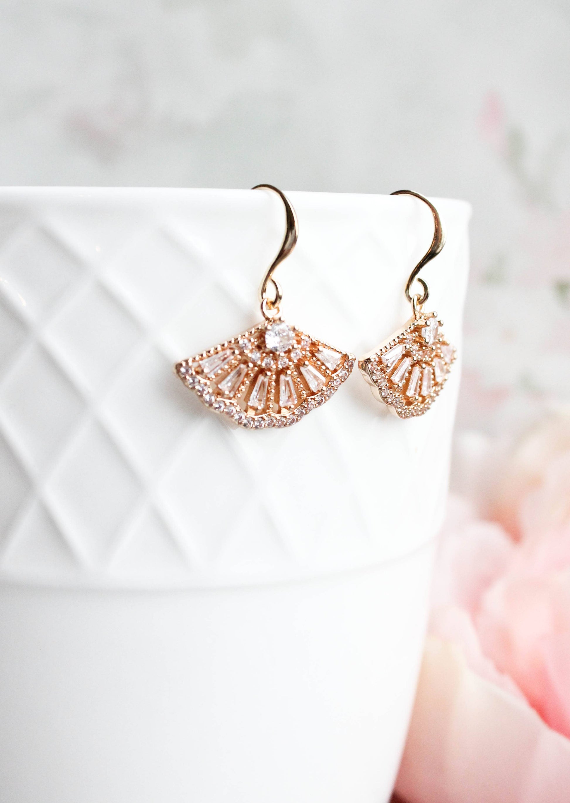 These are beautiful art deco style fan earrings! These sparkling cubic zirconia jewels set in gold plated brass settings.
