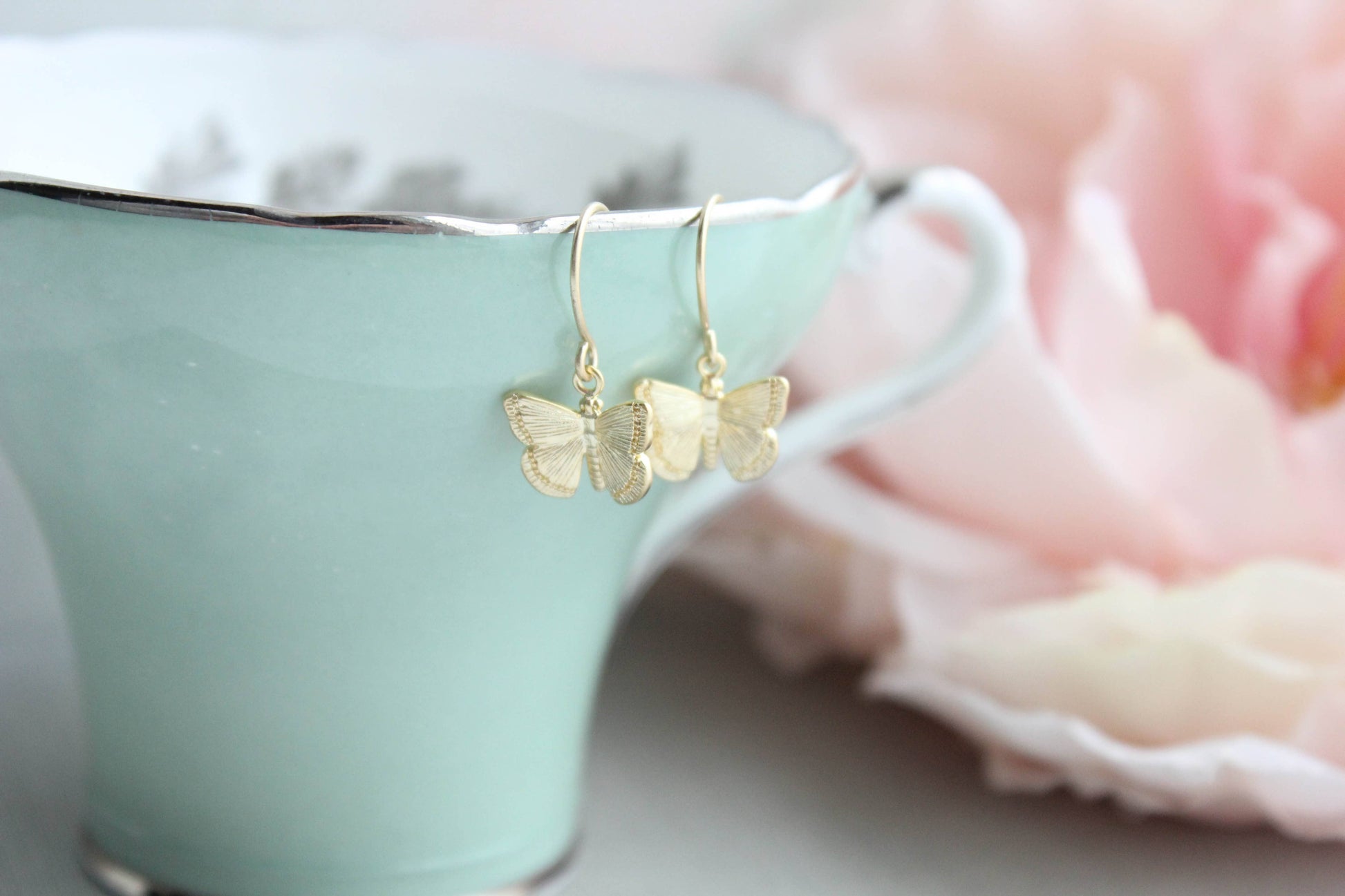 These are little matte gold or matte silver butterfly earrings! These nature inspired small drop earrings have beautiful details! These earrings are nickel free gold plated brass. Lightweight and great for everyday wear, you will love these sweet little dangles.