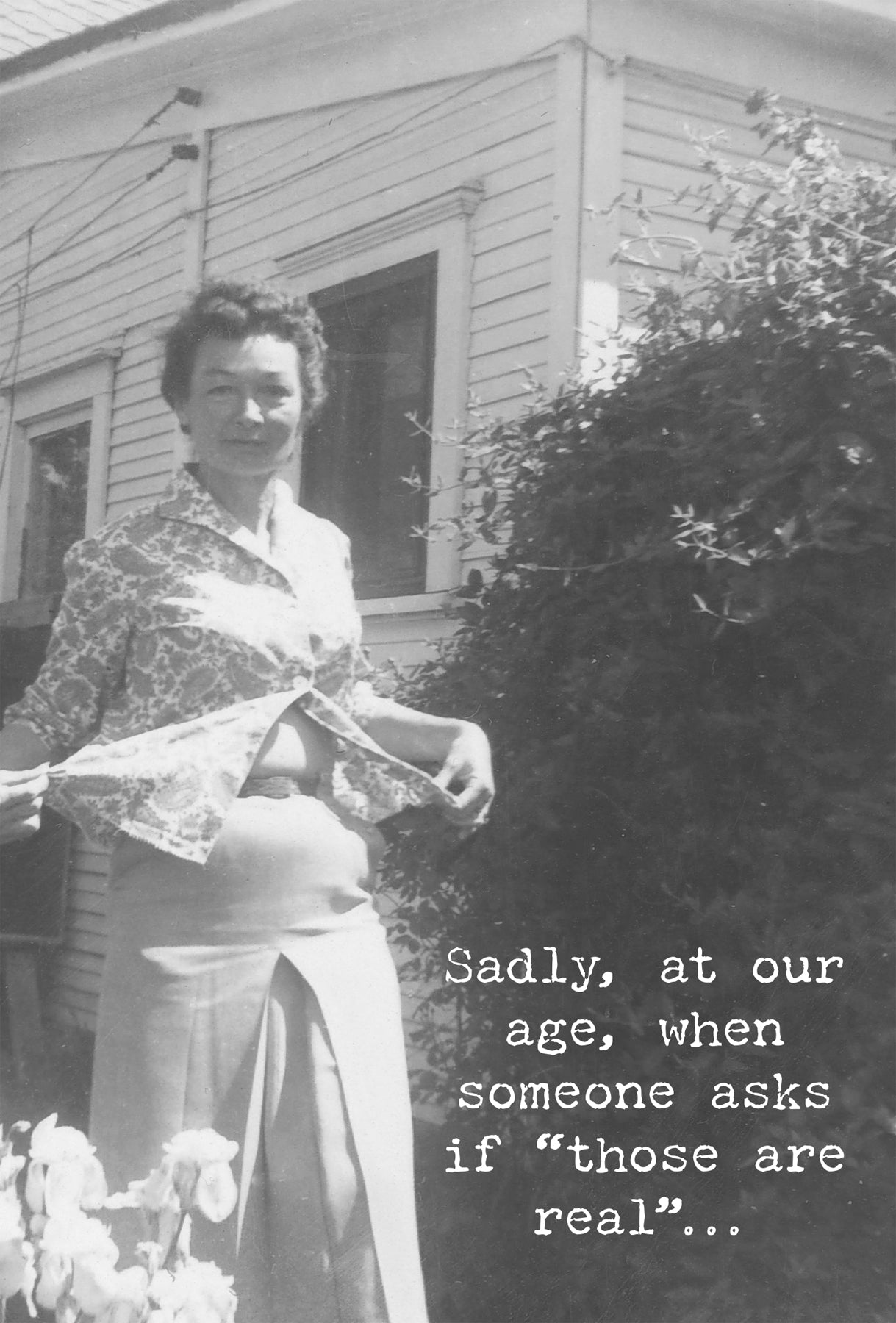Outside: Sadly, at our age, when someone asks if those are real Inside: they're probably referring to your teeth!