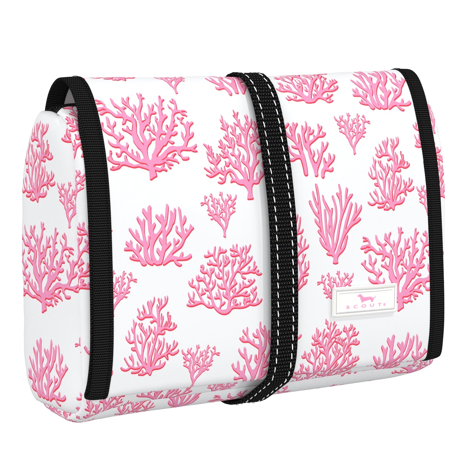 Multifunctional is best when it comes to toiletry bags. Whether you're on the go, or using products at home, a hanging option is essential to convenient storage. Simply fold the bag (like a burrito) when the hanger is not in use.