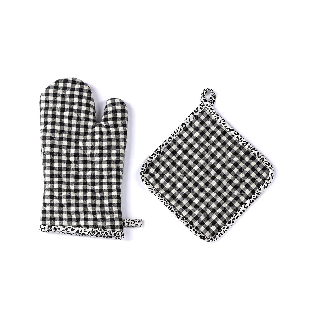 Add to your classic kitchen style with our Gina Pot Holder and Oven Mitt Set. Featuring a classic black and white gingham print and a posh leopard trim, this set has a seamless blend of class and swank. Machine washable, the Gina set will keep your hands safe so you can focus on serving your favorite dishes and worry less about the cleanup.