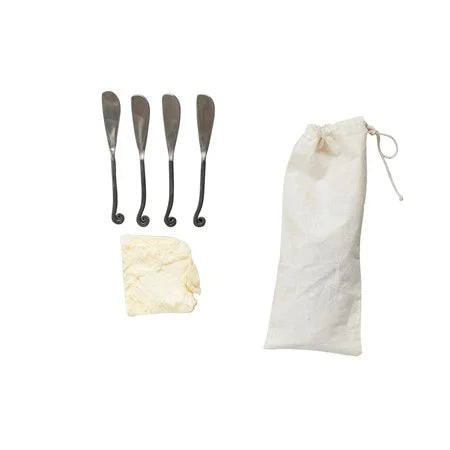 6-1/4"L Hand-Forged Canapé Knives w/ Black Handle, Set of 4 in Drawstring Bag