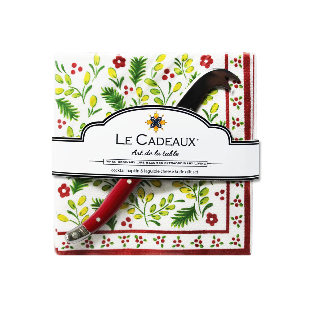 Our soft touch napkins are made of the finest quality 100% wooden pulp virgin tissue and are chlorine free. Product includes 1 x pack of 20 Cocktail Napkins with dimensions 5" x 5" - 10” by 10” when opened. Includes 1 Laguiole mini cheese knife.