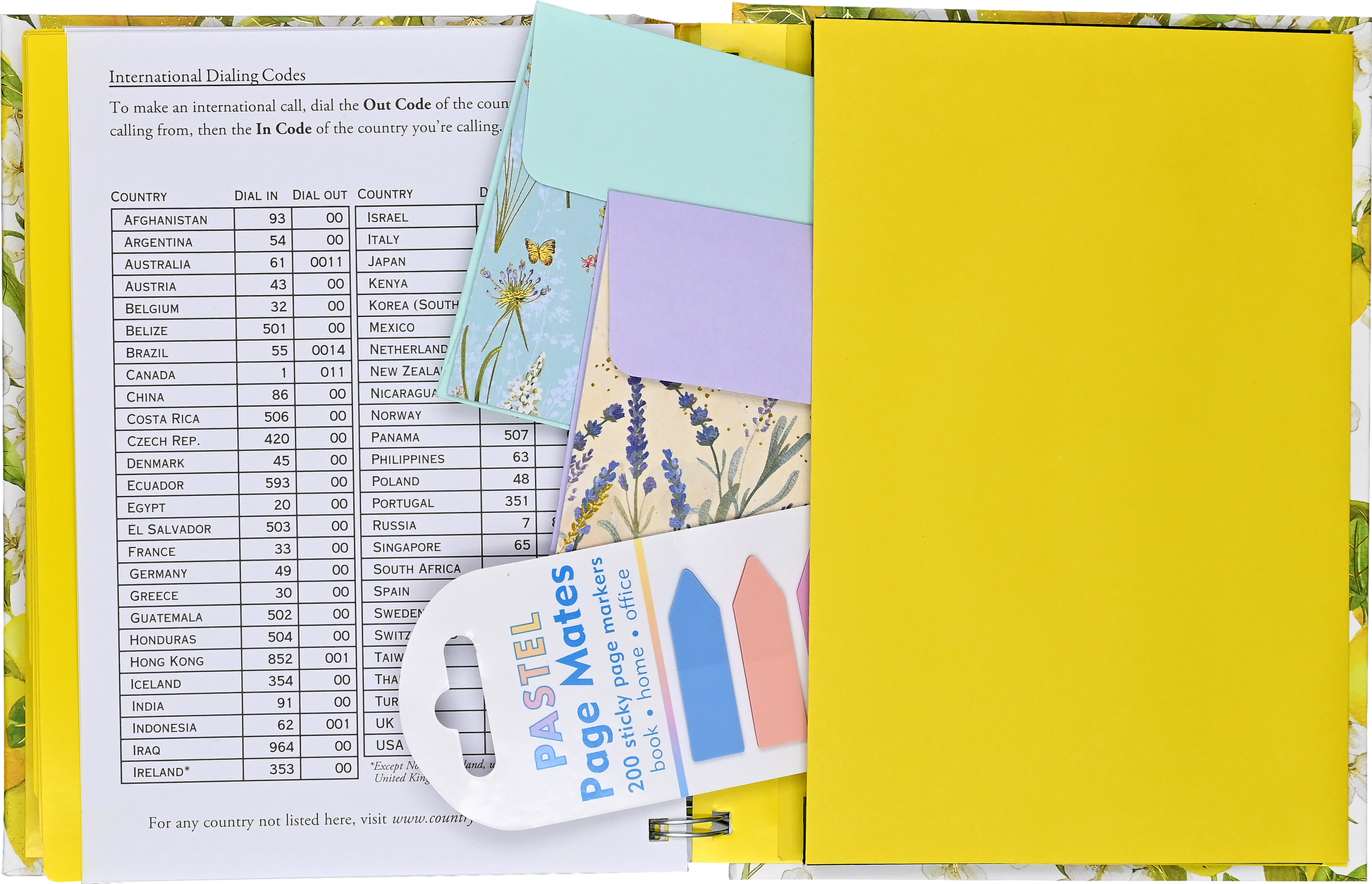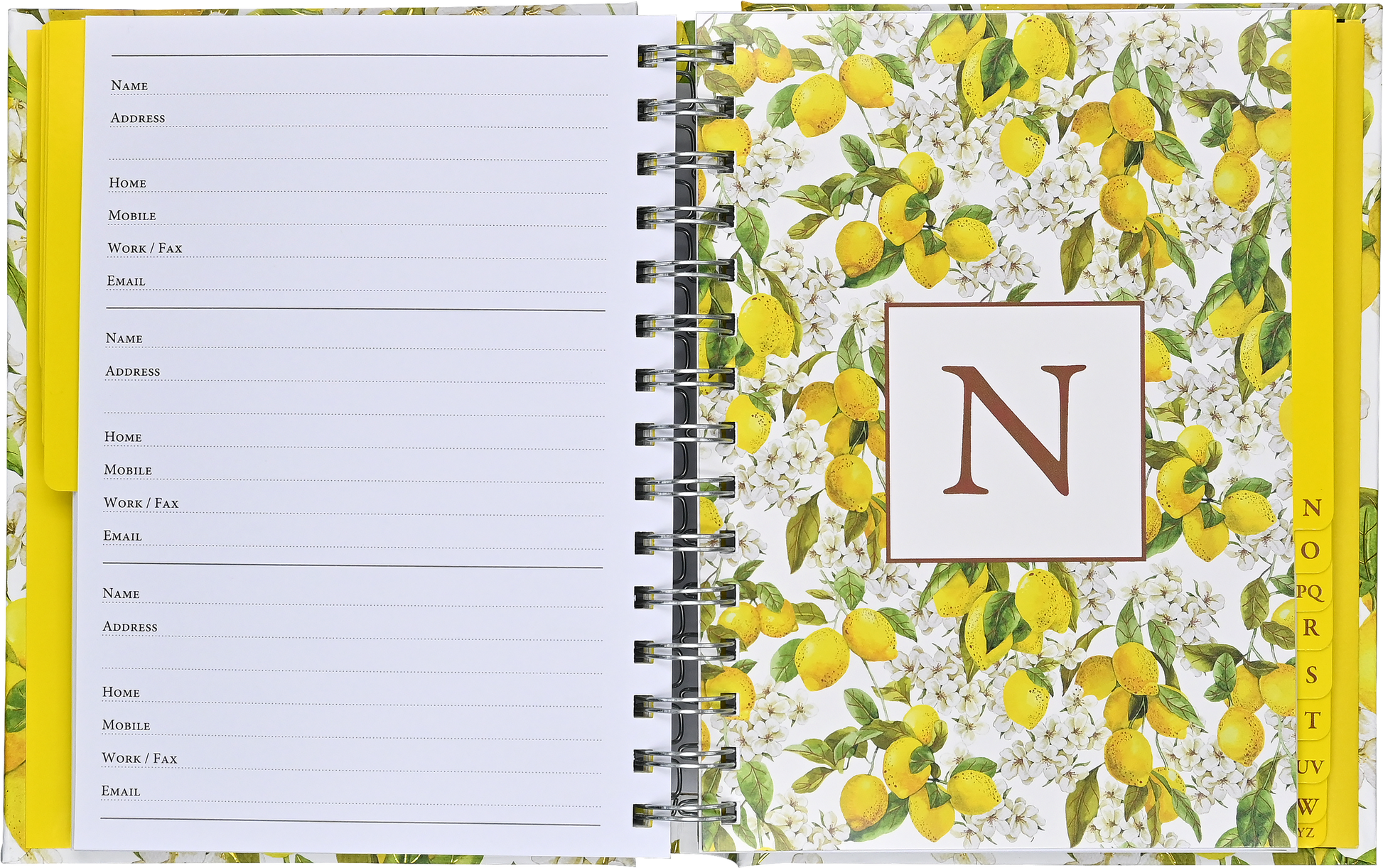 Keeping track of family and friends is easy and satisfying with a beautiful address book. Our larger-size Amalfi Lemons edition provides space for more than 350 contacts! Record names, addresses, home and mobile numbers, work and fax numbers, and email addresses. 21 tabbed dividers (4 tabs combine IJ, PQ, UV, and XYZ) help you locate specific names easily. Tuck postage stamps, cards, notes, and more inside the back cover pocket. You'll also find a handy list of International Dialing Codes. Use the elastic closure to secure your address book. Vibrant design is inspired by the luscious lemons of Italy's Amalfi coast! Covers are embossed and enhanced with gold foil. Larger-sized address book measures 6-7/8'' wide x 8-1/8'' high.