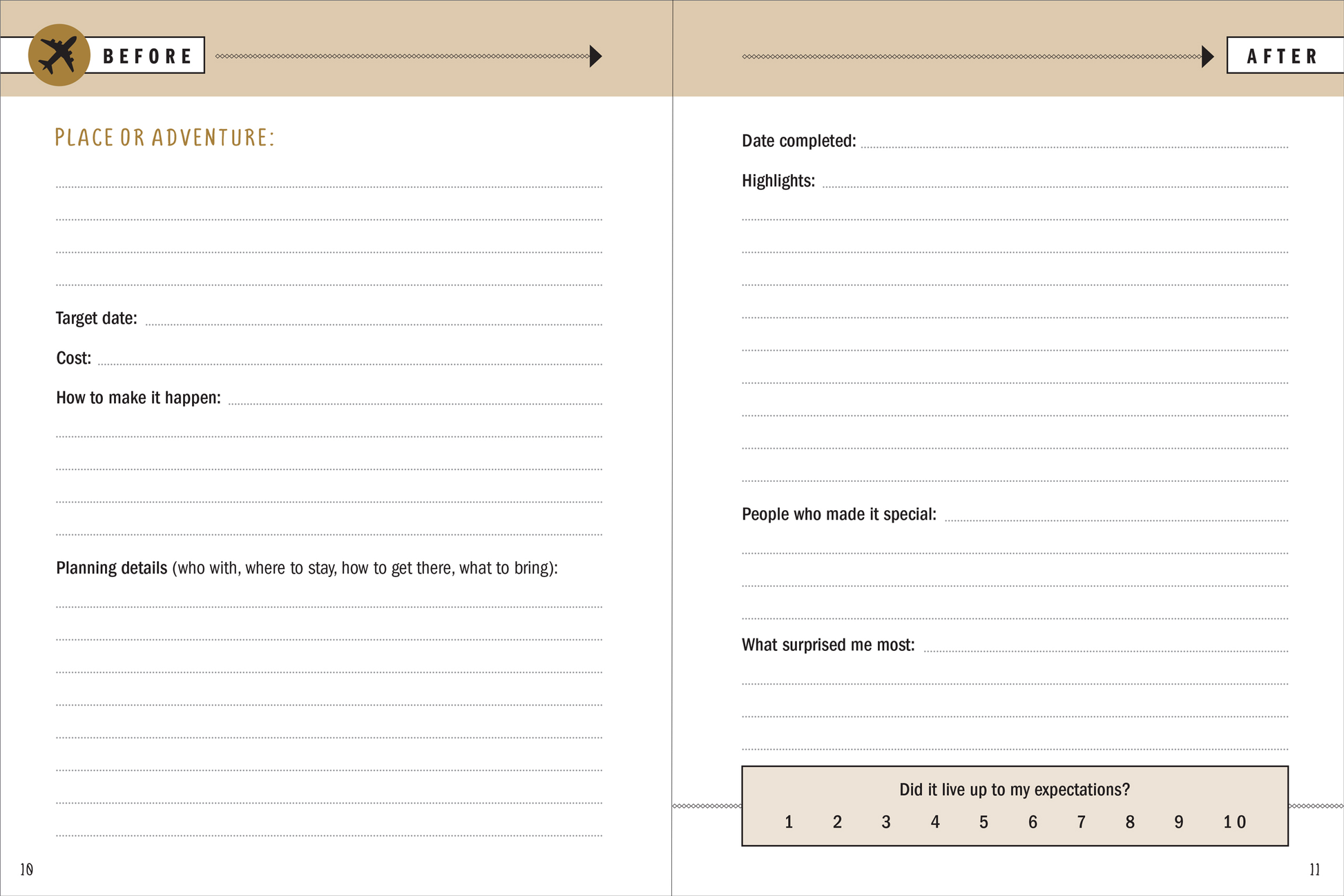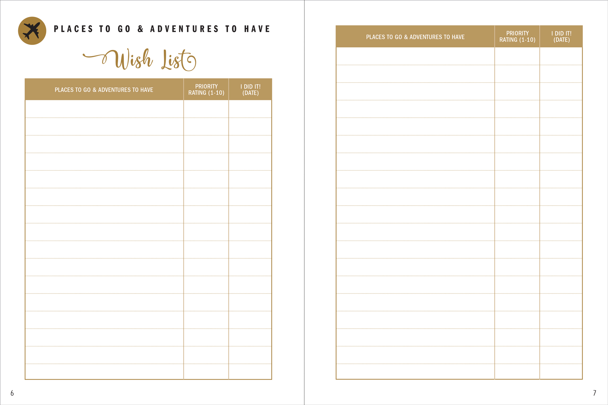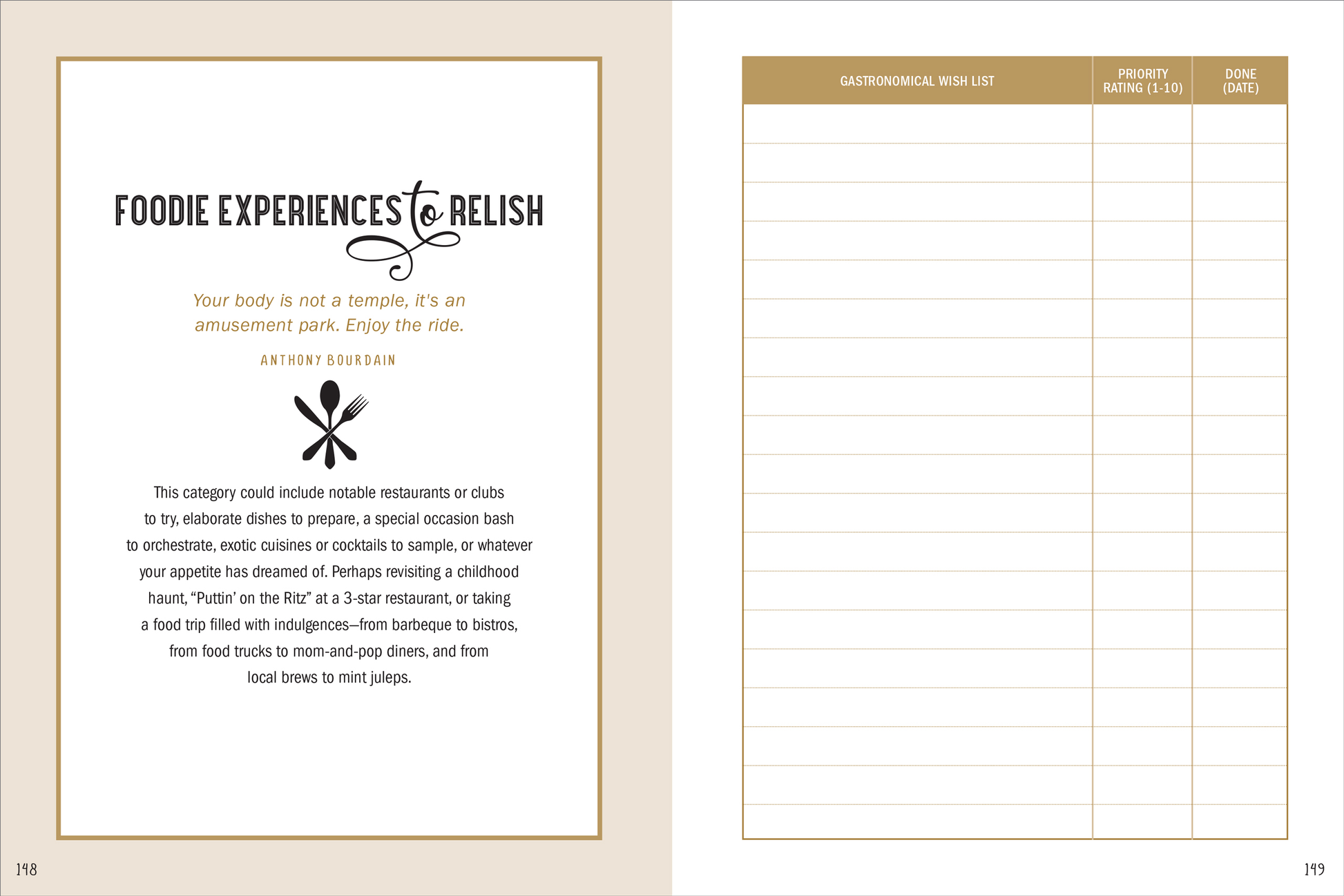 This invaluable prompted journal will help you articulate, prioritize, plan for, and accomplish your ''bucket list'' dreams and intentions, both large and small! Use the main section to write the before and after details of 65 trips and experiences. Smaller sections are dedicated to books to read, movies and shows to see, food and drink, good works to do, and things to learn or achieve. Adventures await! Handsome black hardcover binding is stamped with gold foil. Thick, smooth-finish pages support pen or pencil. Acid-free, archival-quality 120 gsm paper helps preserve your entries. A handy inside back cover pocket holds notes, bucket list mementos, and more. The elastic closure keeps it all together. Durable binding, Journal measures 6-1/4'' wide x 8-1/4'' high. 160 pages.