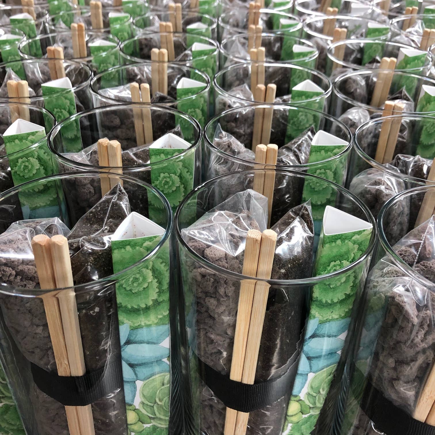 Vertical Succulent Terrarium {Sedum, Tall 'Many Species Mix'} Combining smart design and sustainable materials to create a modern interpretation of the classic terrarium, this indoor garden contains everything needed to grow succulents in a glass vessel. Includes: seed, soil-less growing medium, recycled glass pebbles for drainage, bamboo 'chopstick' tool, directions. Vessel size 7.5" tall x 3.5" diam.