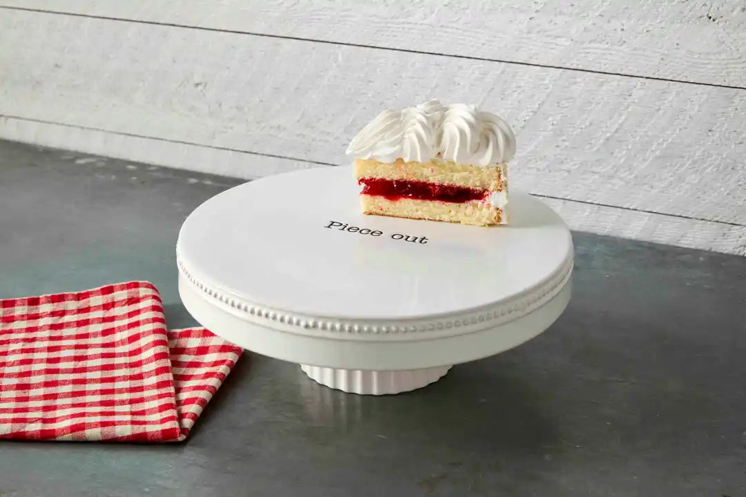 The beaded ceramic server features an attached fluted pedestal. The server flips to become a dip bowl and platter for snack service. This is a two-in-one special as it flips from chip and dip to cake server.