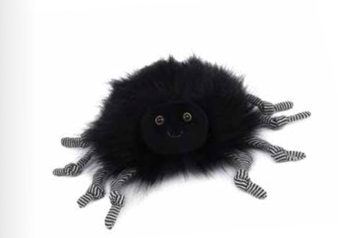 The cutest stuffy for Halloween. Spinner the Spider is the perfect companion for eating your curds and whey. Her striped legs are knotted striped cotton.