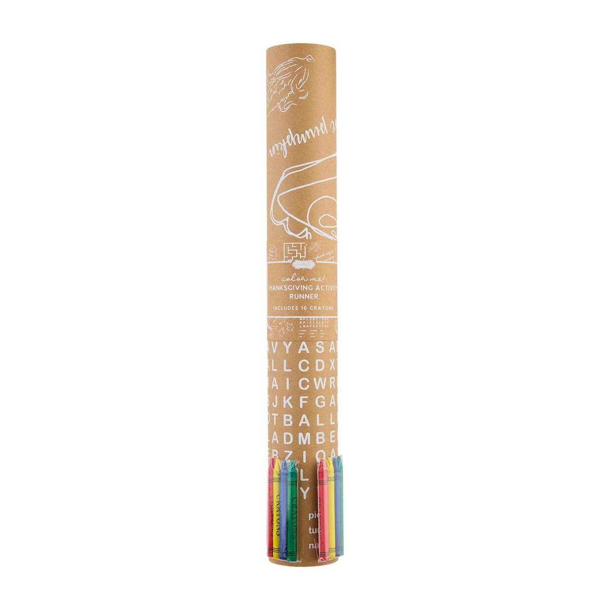2-piece set. Disposable 30 ft. kraft paper table runner comes with pack of 16 crayons.