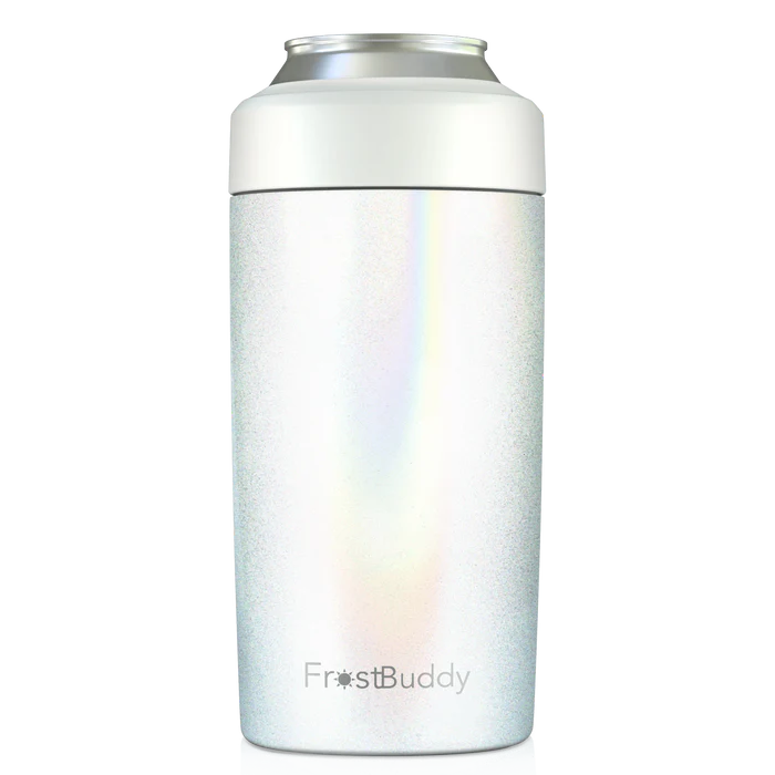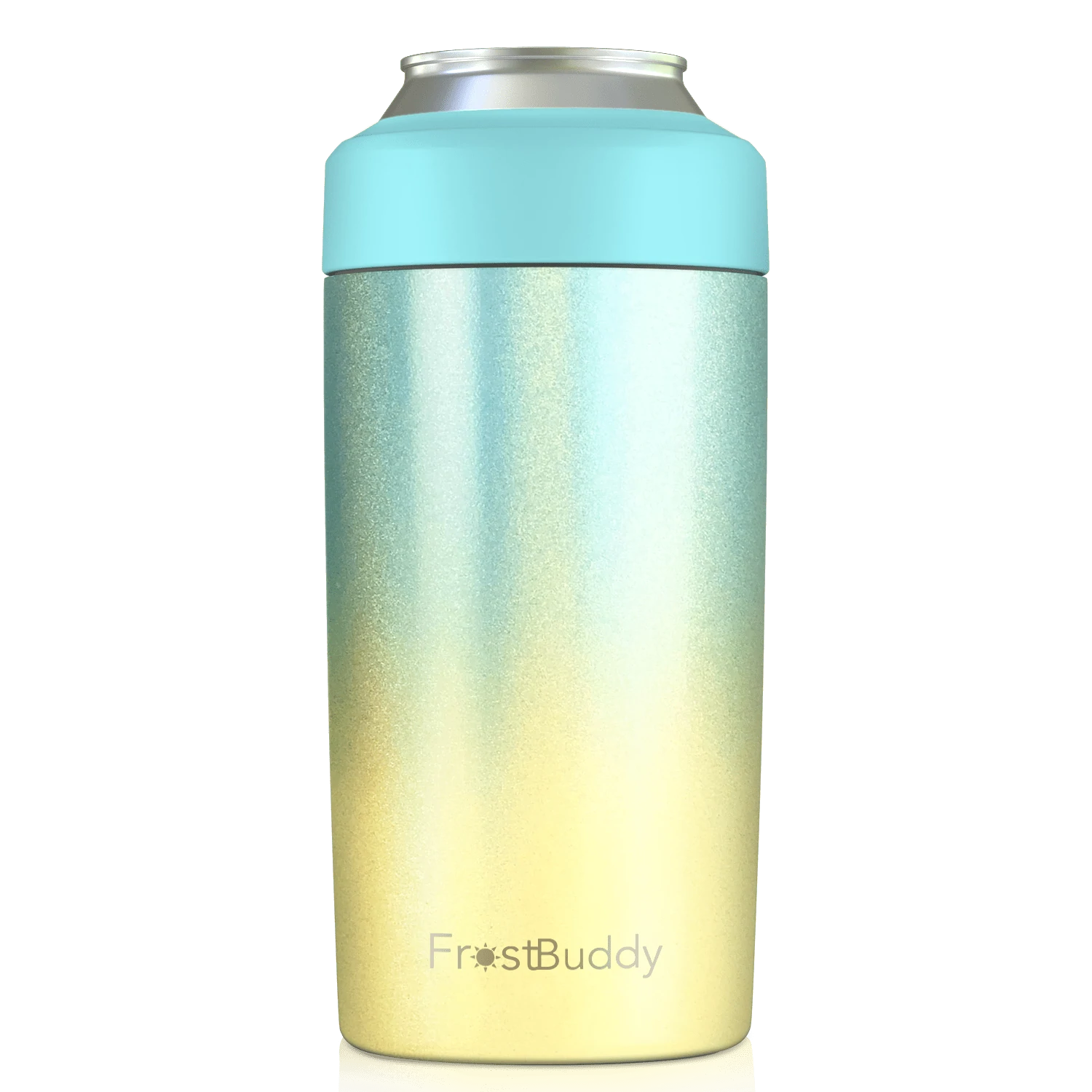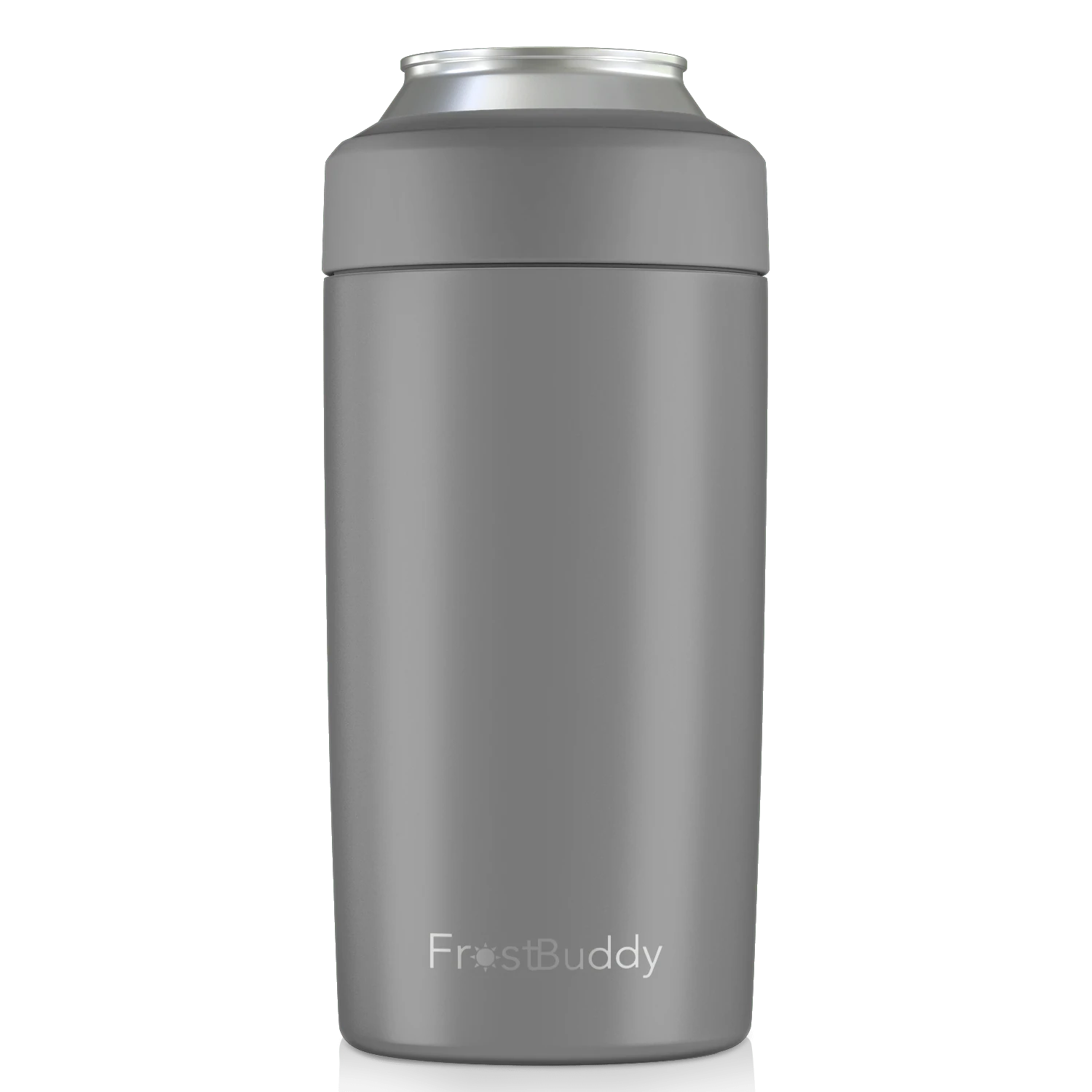 Normal can coolers only fit one size. We invented the Universal to fit every 12oz & 16oz can/bottle in one. Over 500+ drinks fit making Frost Buddy the most versatile product in the world.