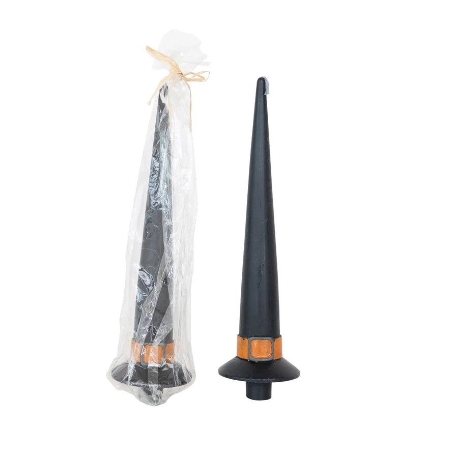 2-1/2" Round x 10"H Unscented Witch Hat Shaped Taper Candle, Black and Orange Color (Approximate Burn Time 15 Hours)